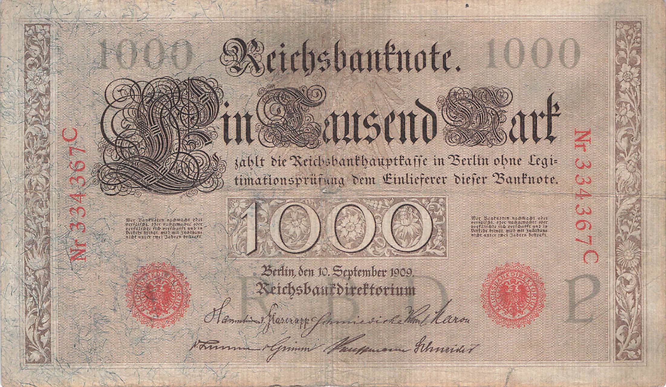 Ro.039 P/C - 1000 Mark 10.09.1909 F+