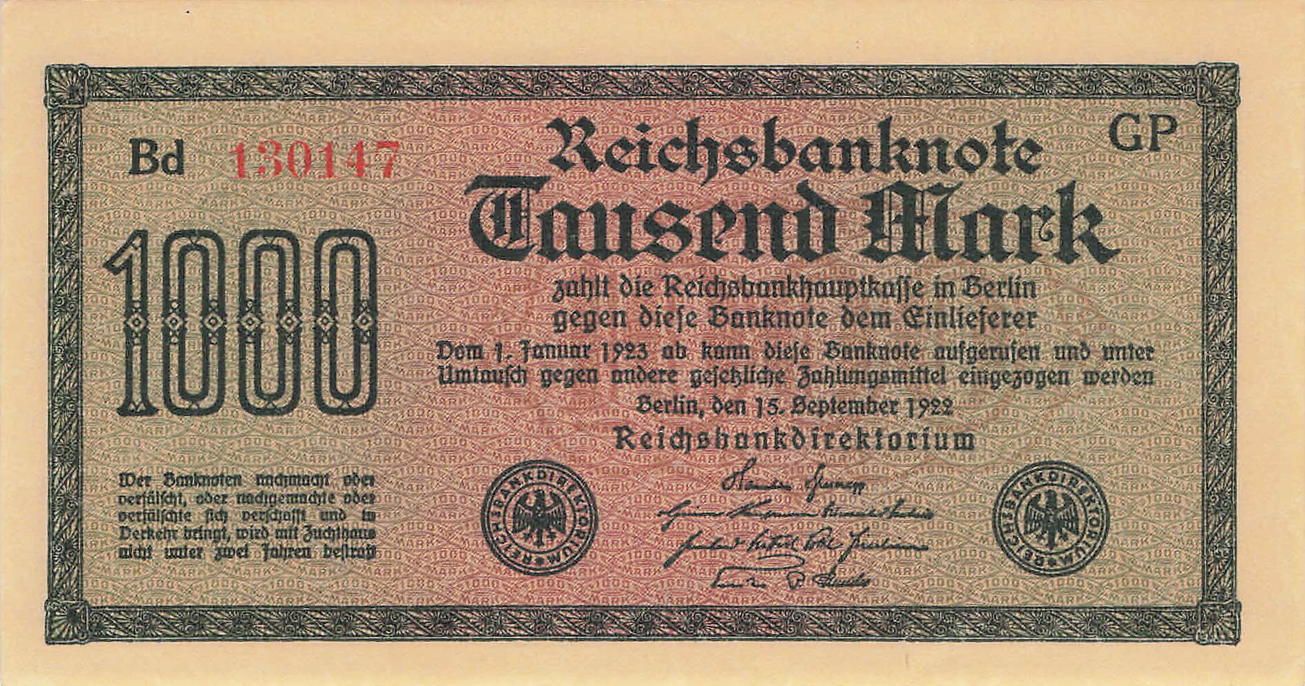 Nennwert: 1000 Mark