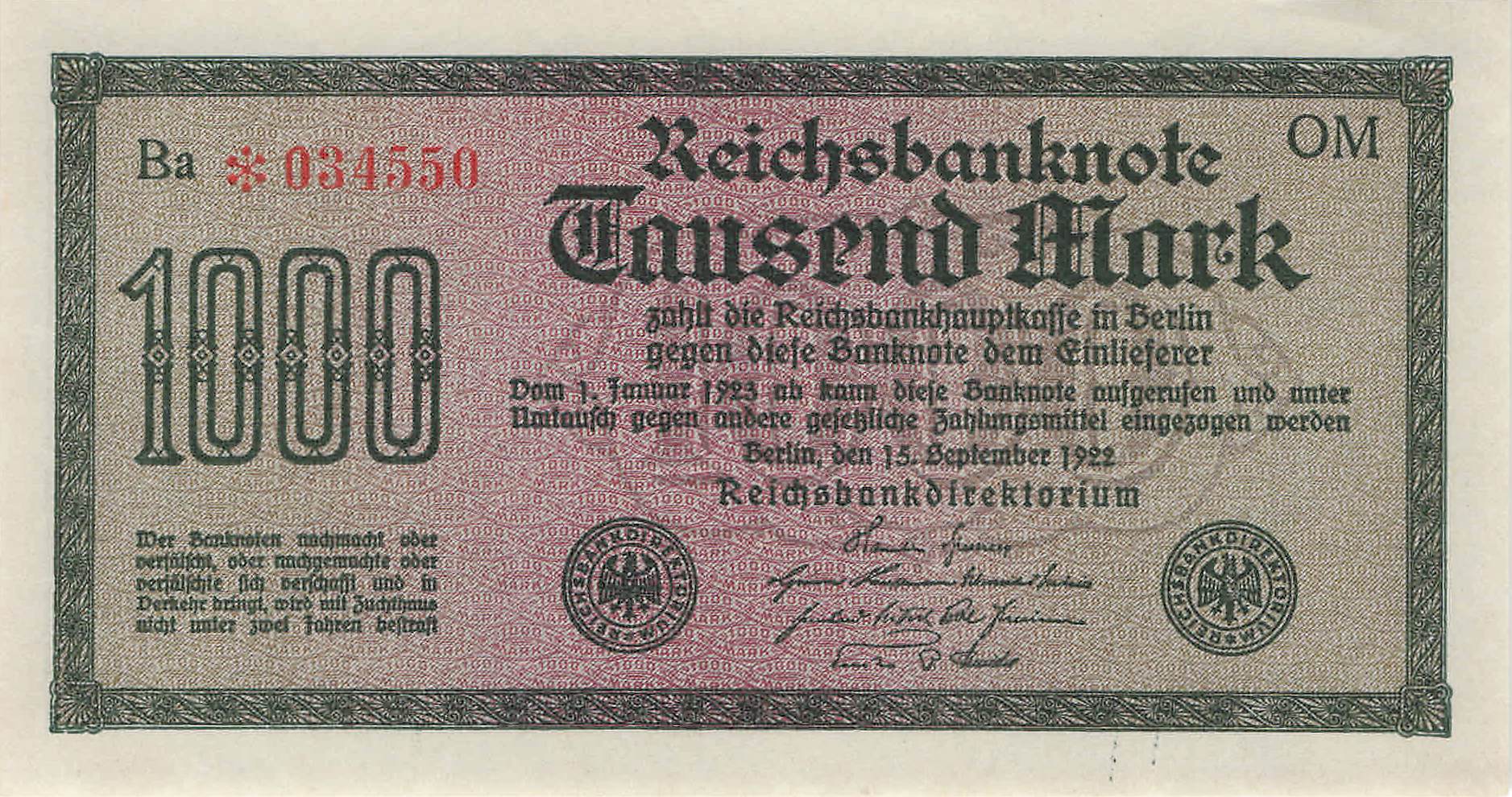 Ro.075q OM - 1000 Mark 15.09.1922 UNC