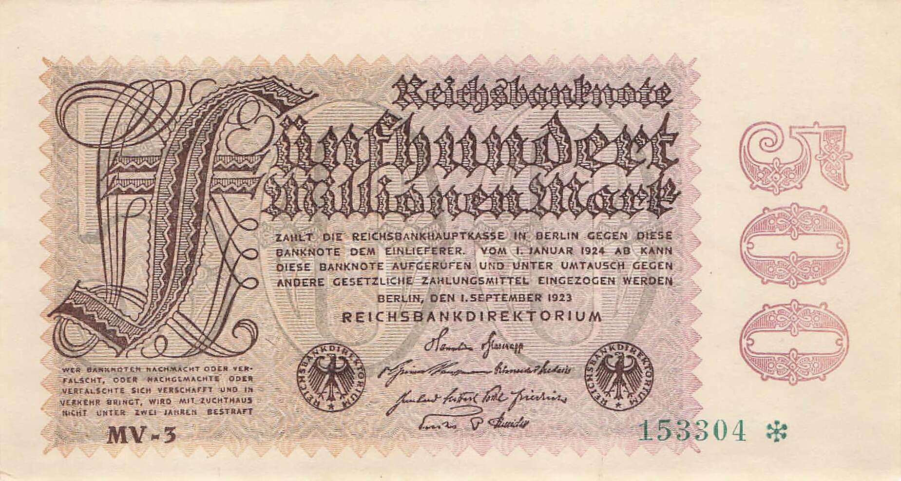 Ro.109d MV - 500 Millionen Mark 1.9.1923 UNC-