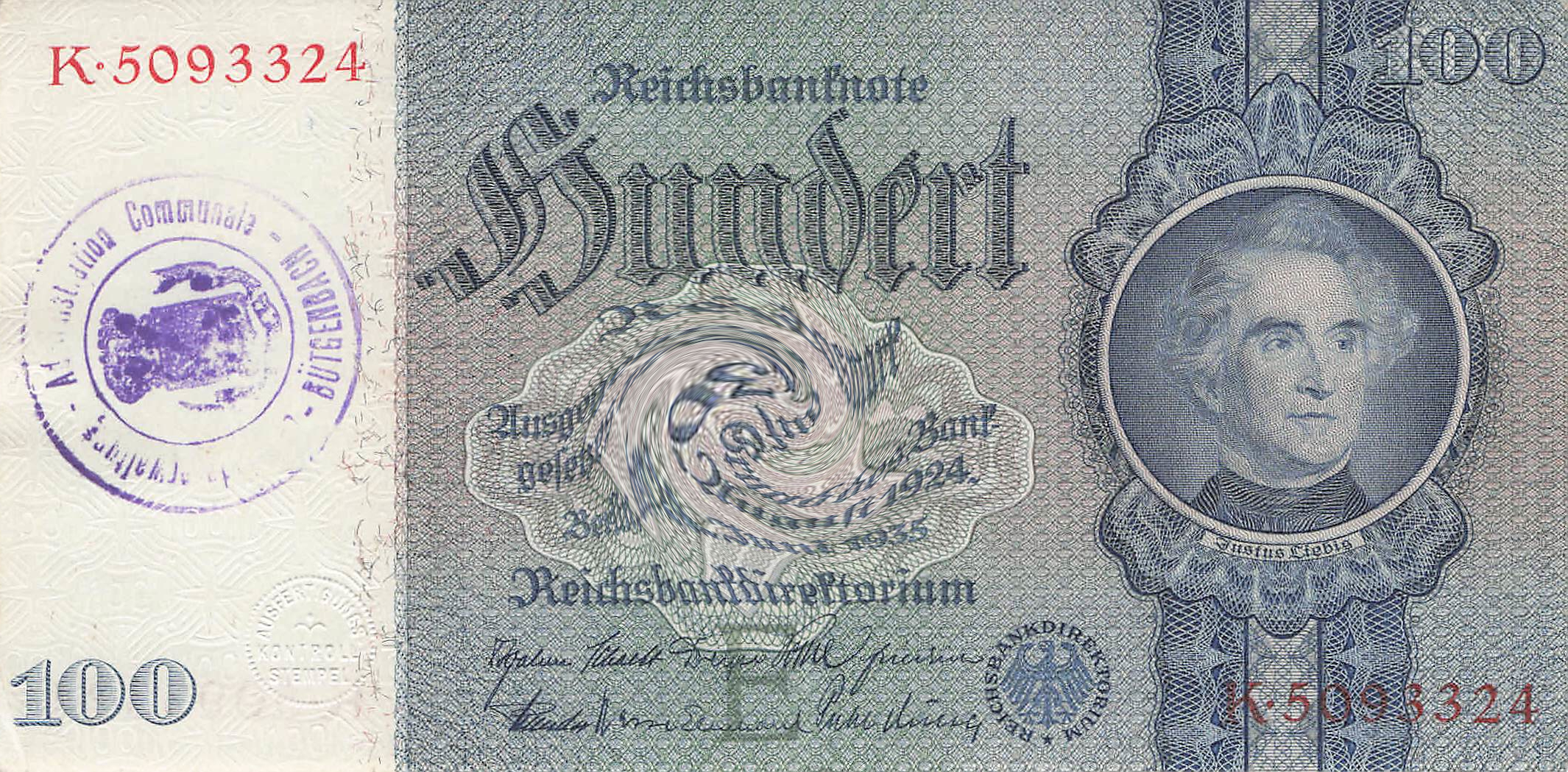 Ro.176e E/K - 100 Mark 24.06.1935 AU- Gemeindestempel