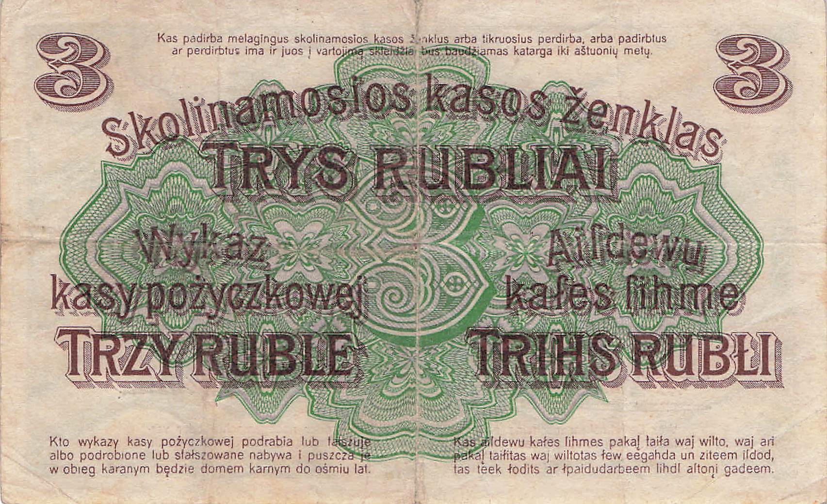 Ostbank für Handel Ro.460 F - 3 Rubel 17.04.1916 F