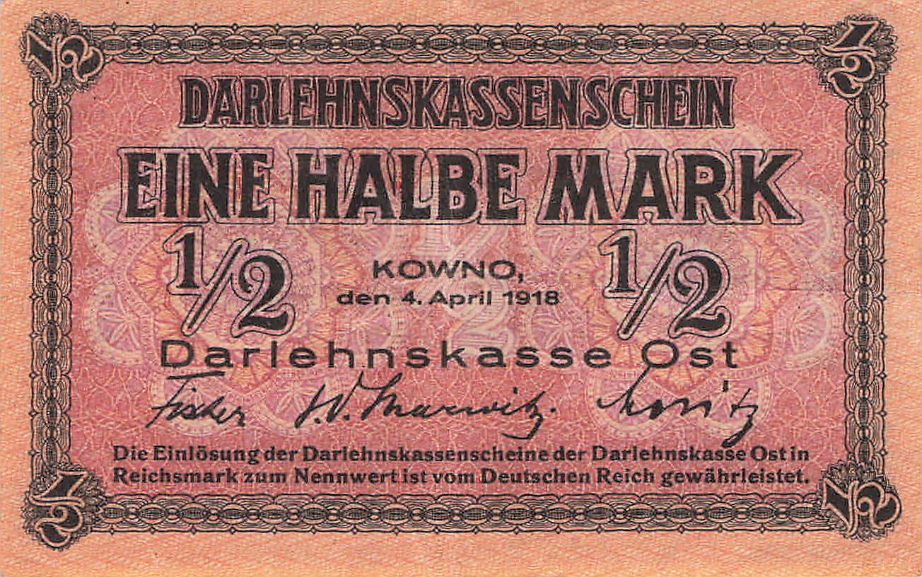 Darlehnskasse Ost Ro.464 B - 1/2 Mark 04.04.1918 VF