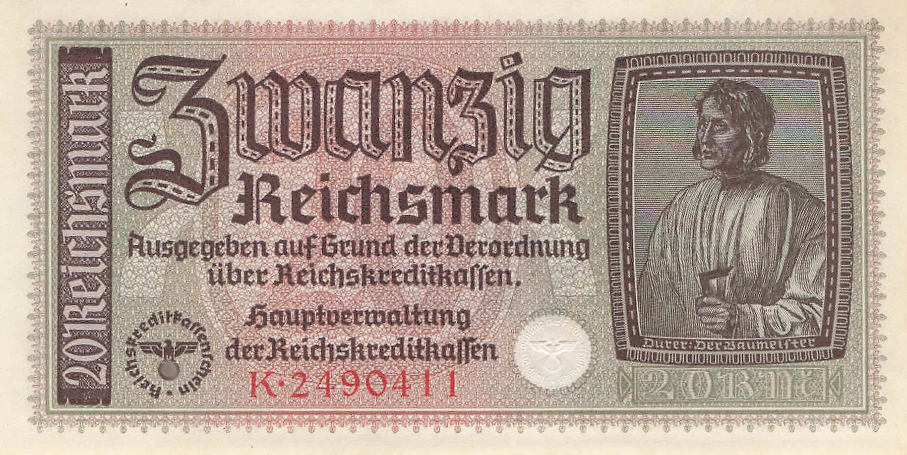 Reichskreditkasse Ro.554a Serie K - 20 Mark UNC