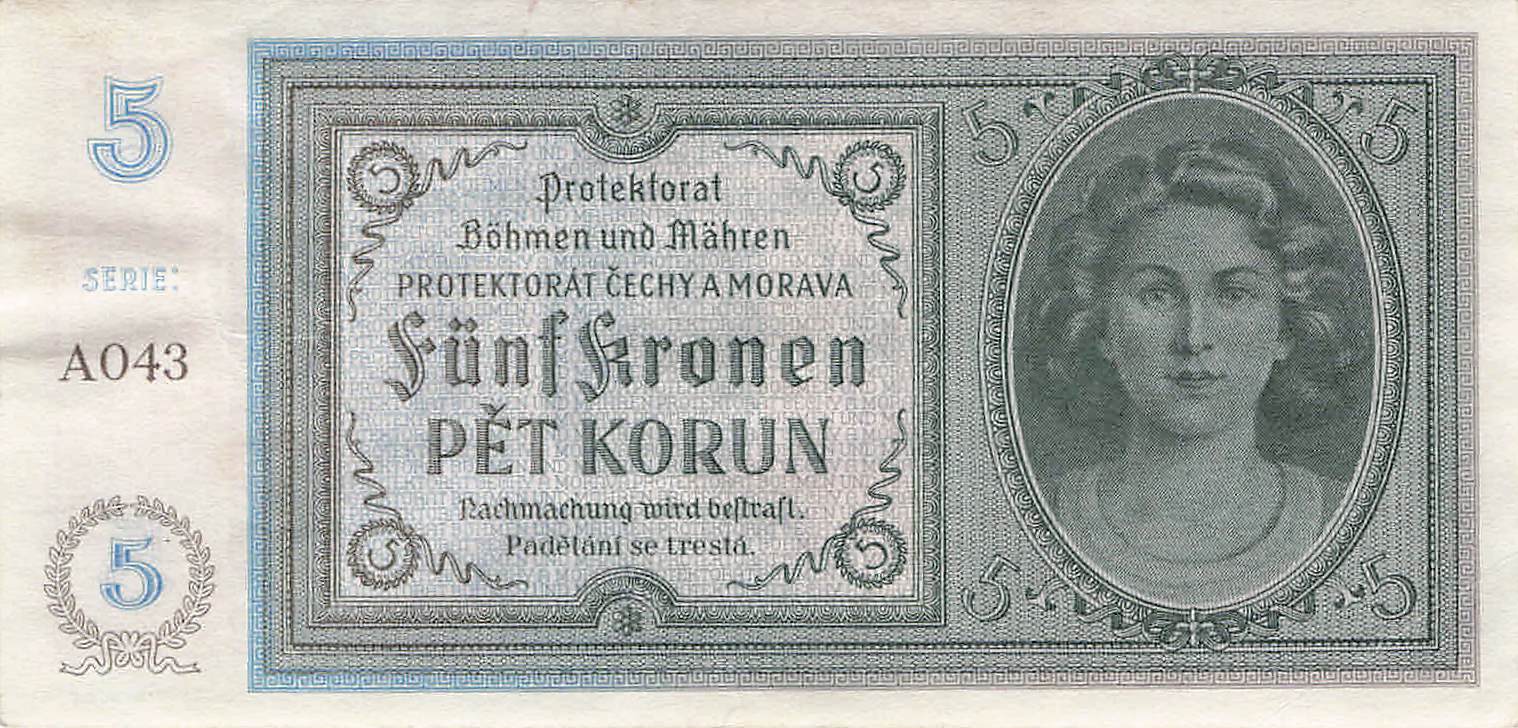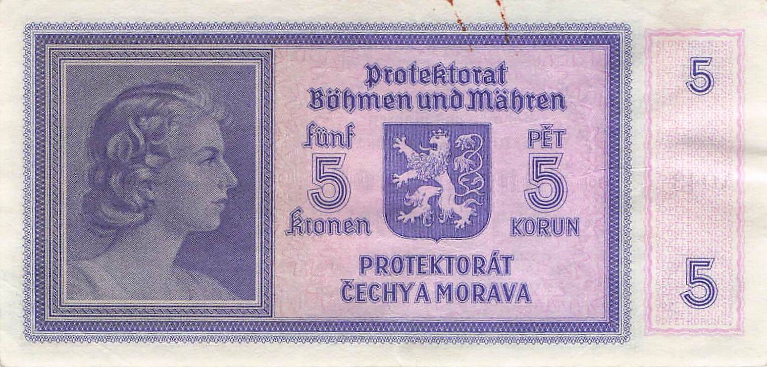 Böhmen und Mähren Ro.559a A - 5 Kronen VF+