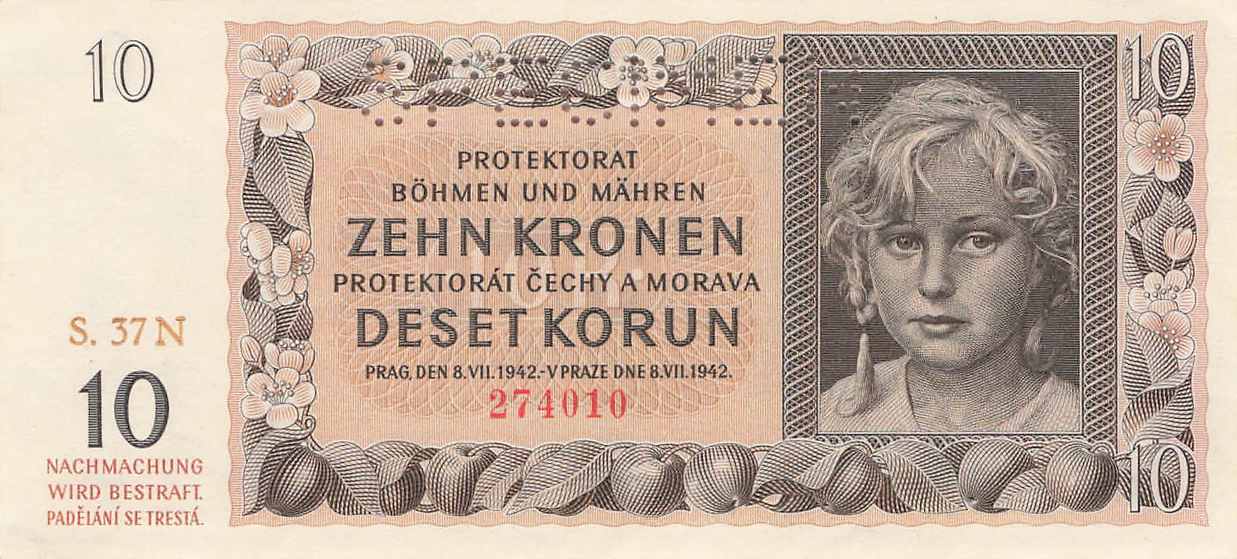 Böhmen und Mähren Ro.562b Serie N - 10 Kronen UNC