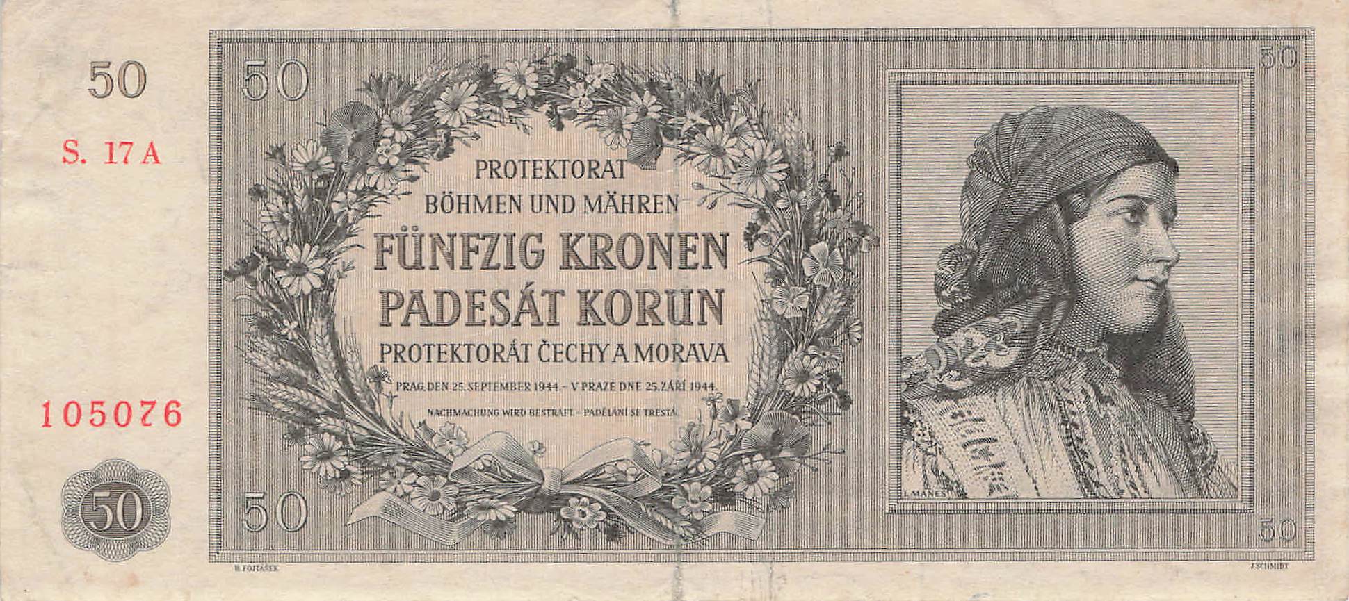 Böhmen und Mähren Ro.564a Serie A - 50 Kronen VF-