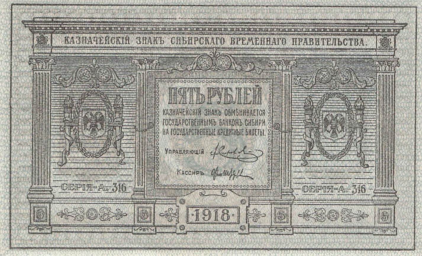 Sibirische Übergangsregierung P.S817 - 5 Rubel 1918 UNC