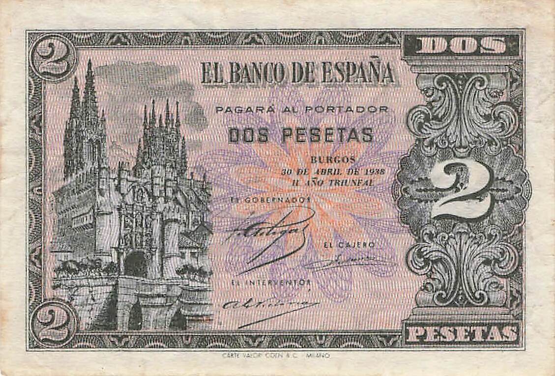 Spanien P.109 - 2 Pesetas 30.04.1938 VF