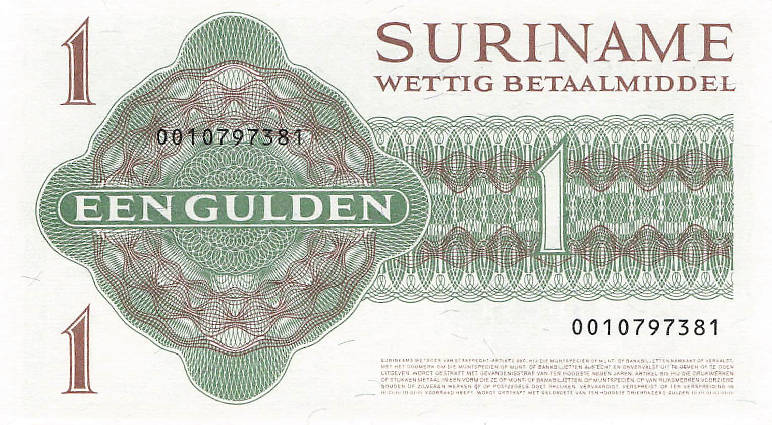 Suriname P.116f - 1 Gulden 1.09.1982 UNC