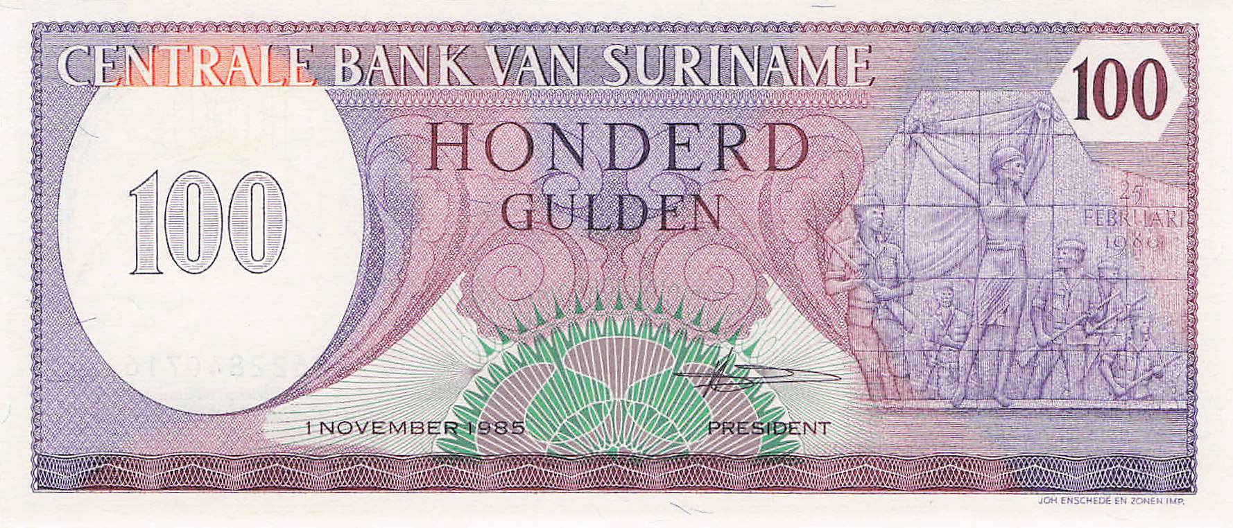 Suriname P.128b - 100 Gulden 01.11.1985 UNC