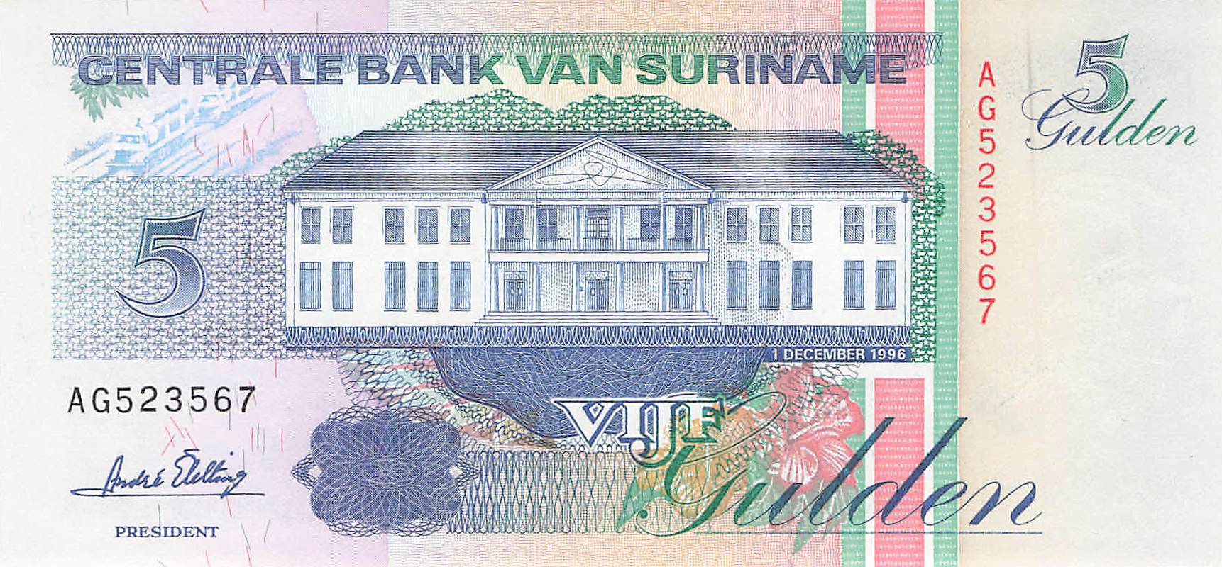 Suriname P.136b - 5 Gulden 01.12.1996 UNC