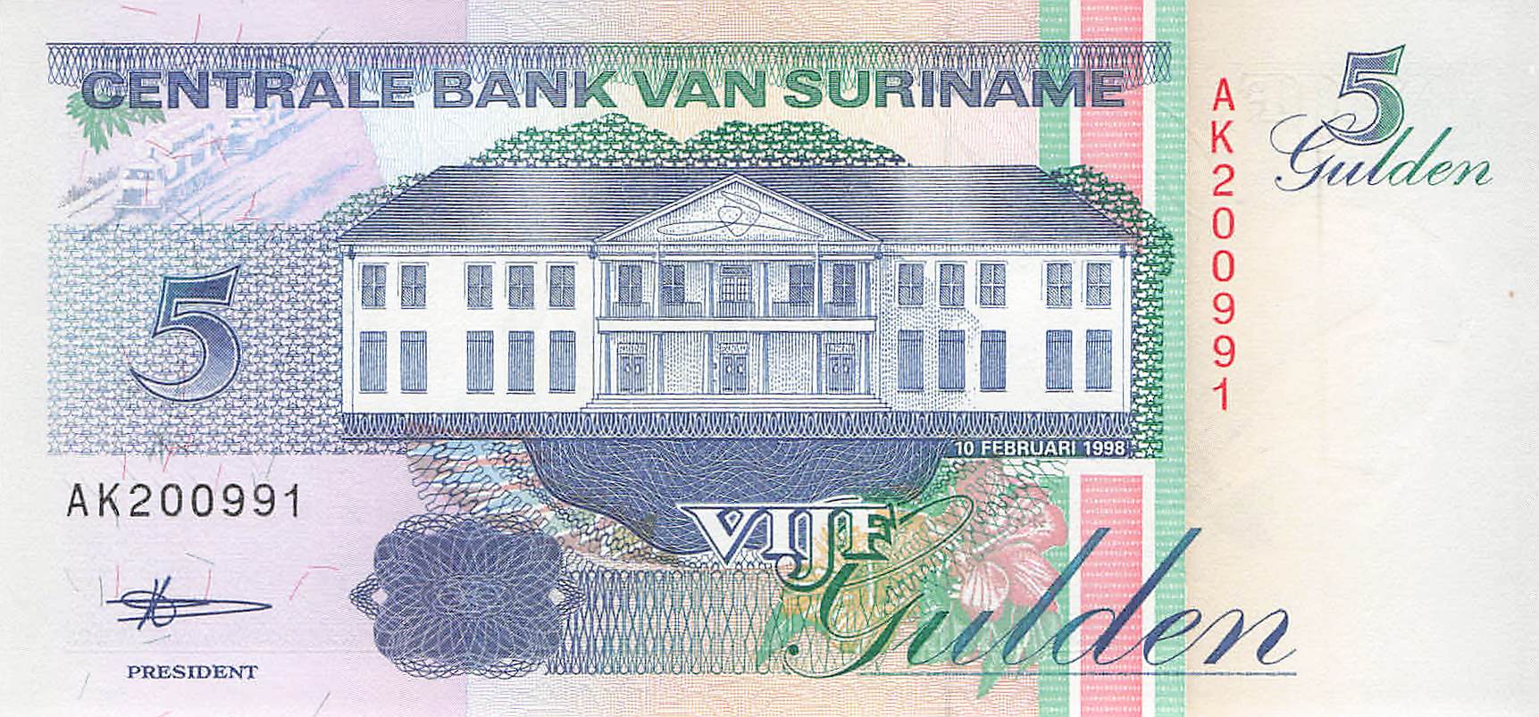 Suriname P.136b - 5 Gulden 10.02.1998 UNC