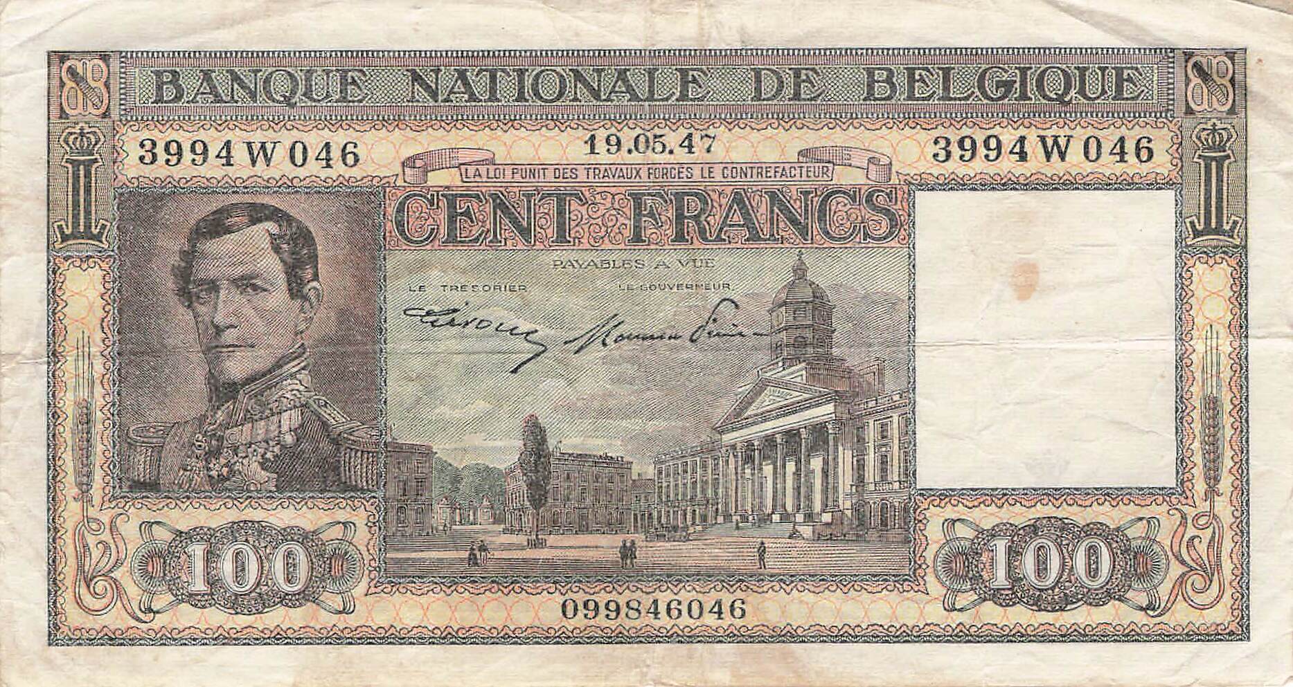 Belgium P.126a-2 -100 Franc 19.05.1947 F+