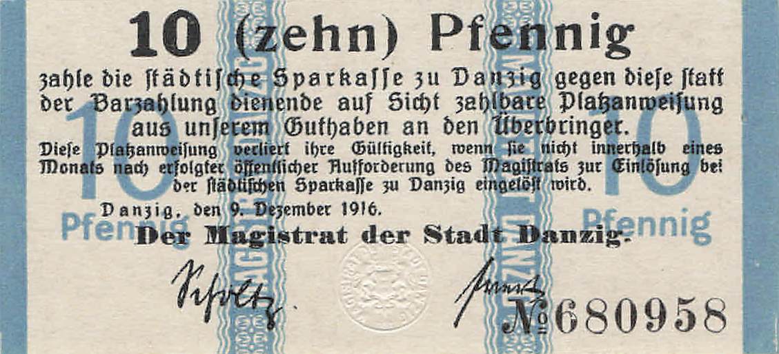 Danzig - 10 Pfennig 09.12.1916 UNC