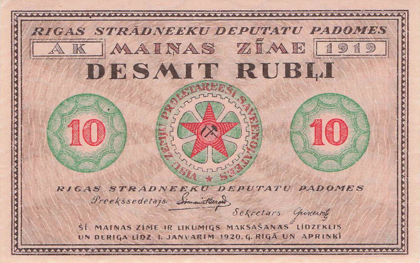Latvia P.R4 - 10 Rubli 1920 UNC