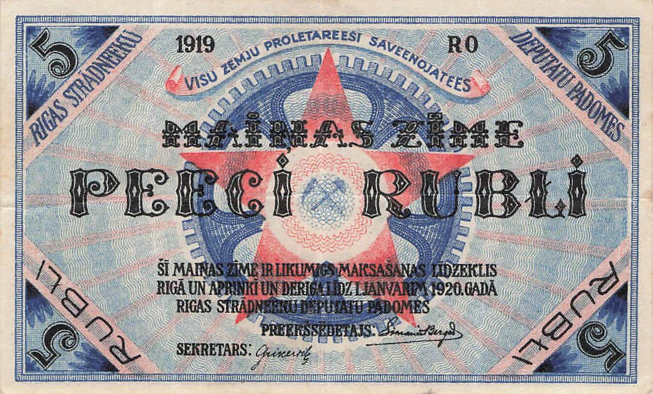 Latvia P.R3 - 5 Rubli 1920 VF