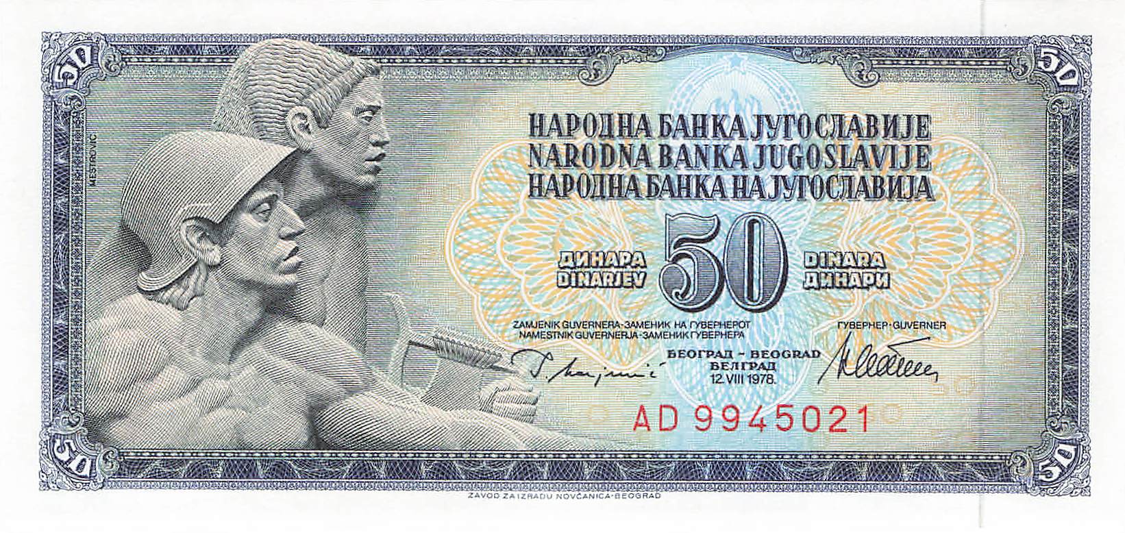 Yugoslavia P.089a - 50 Dinara 1978 UNC