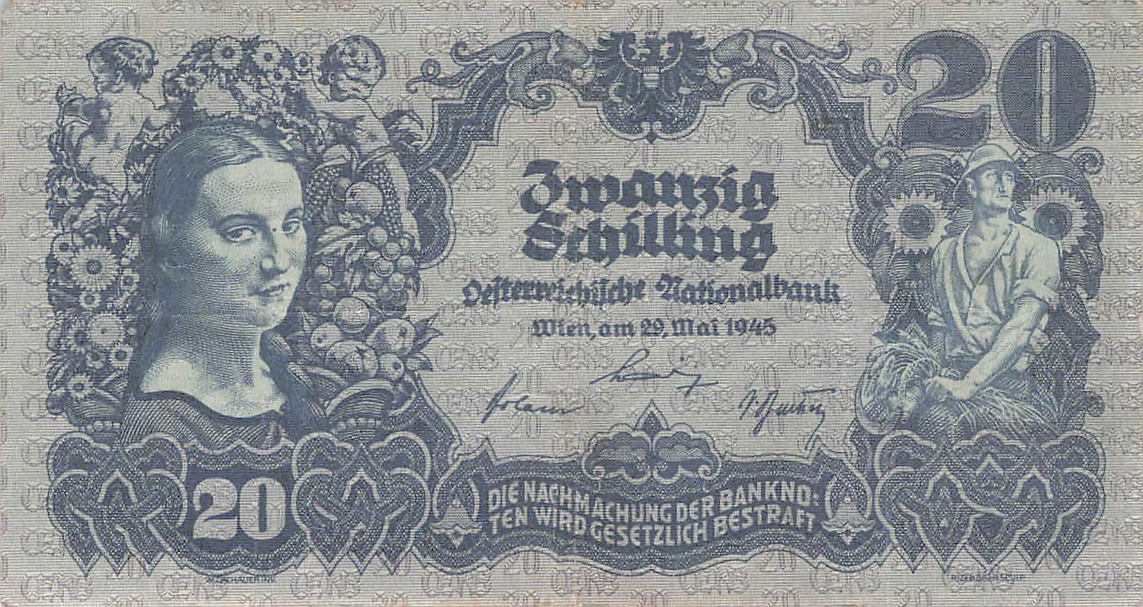 Austria P.116-1 - 20 Schilling 1945 VF