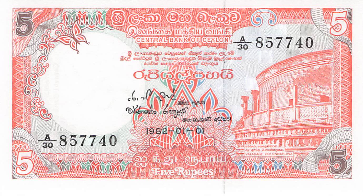 Ceylon P.091 - 5 Rupees 1.1.1982 UNC