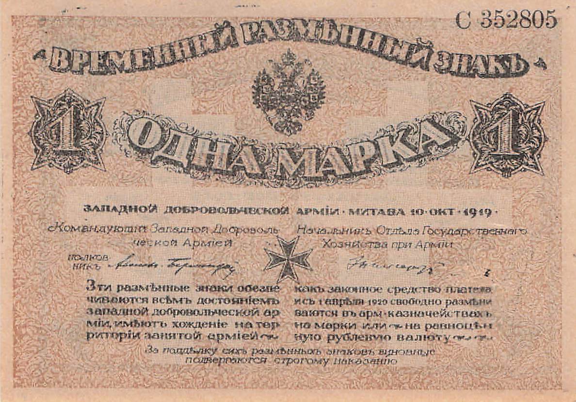 Freiwillige Westarmee P.S226a S - 1 Marka 1919 UNC Mil-1