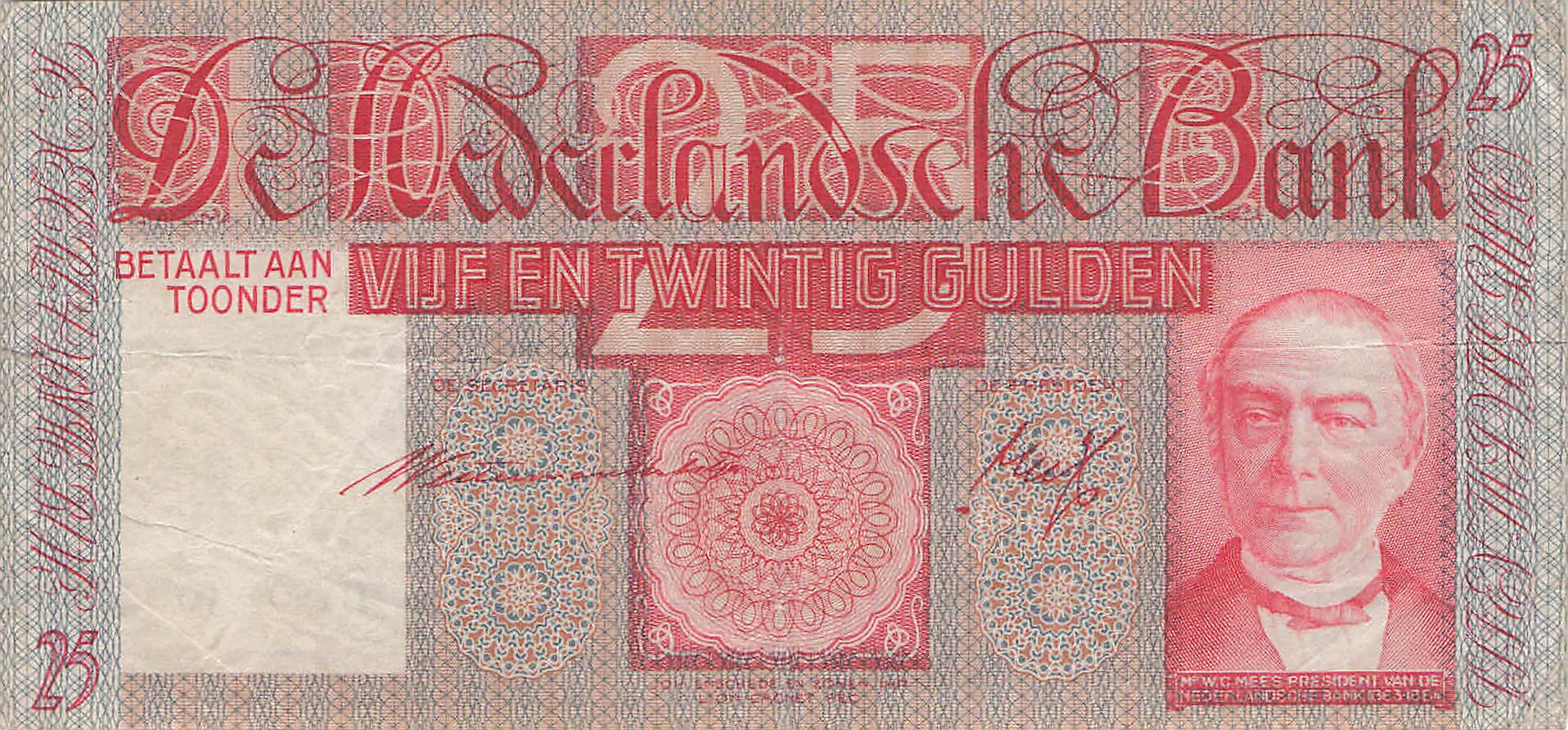 Netherlands P.050 - 25 Gulden 19.03.1941 VF-