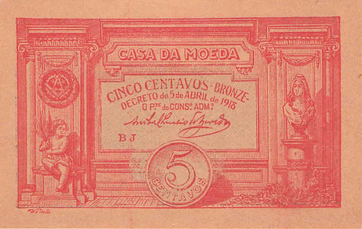 Portugal P.098-1 - 5 Centavos 05.4.1918 UNC thick brown paper