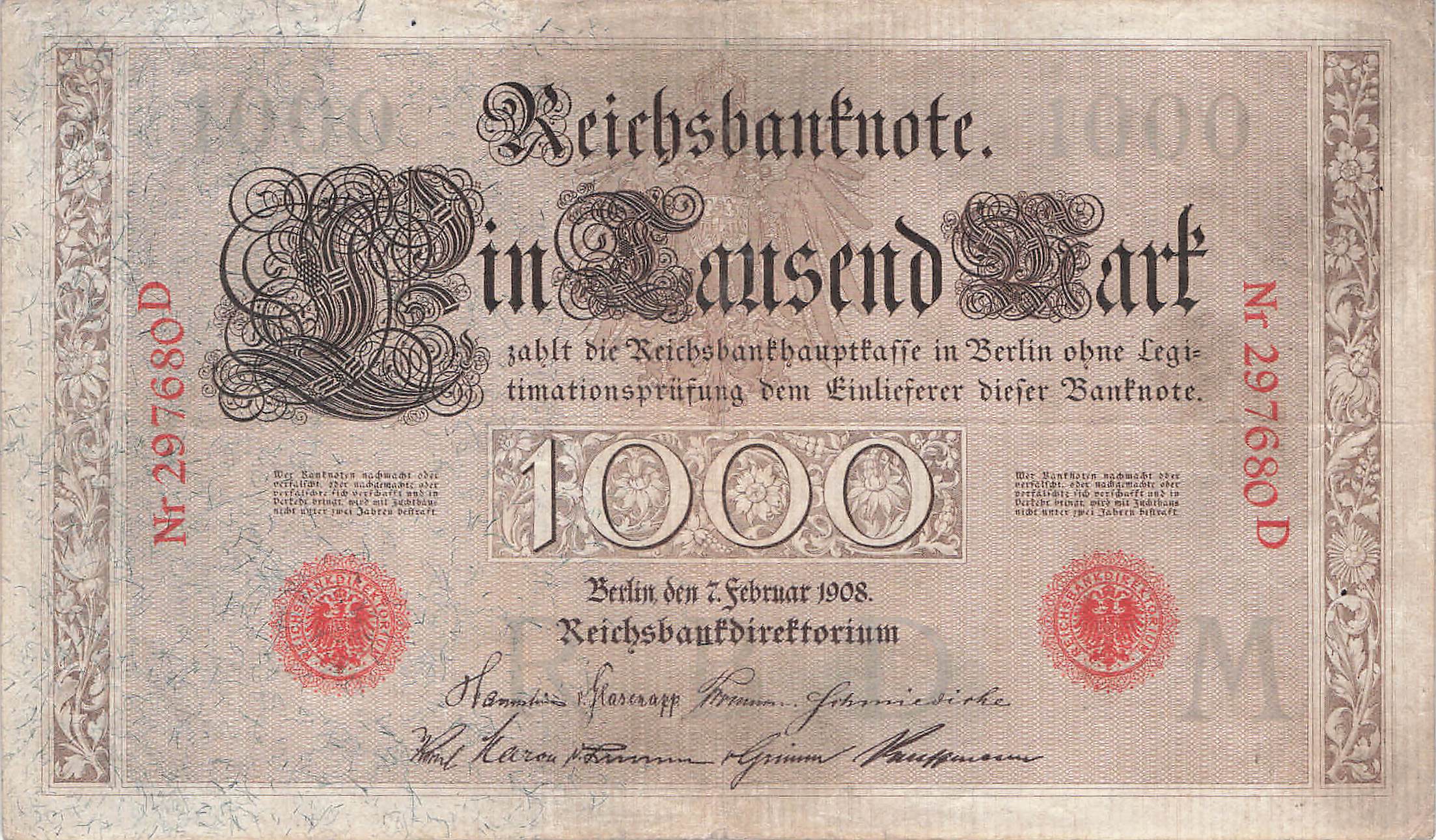 Ro.036 M/D - 1000 Mark 7.2.1908 VF