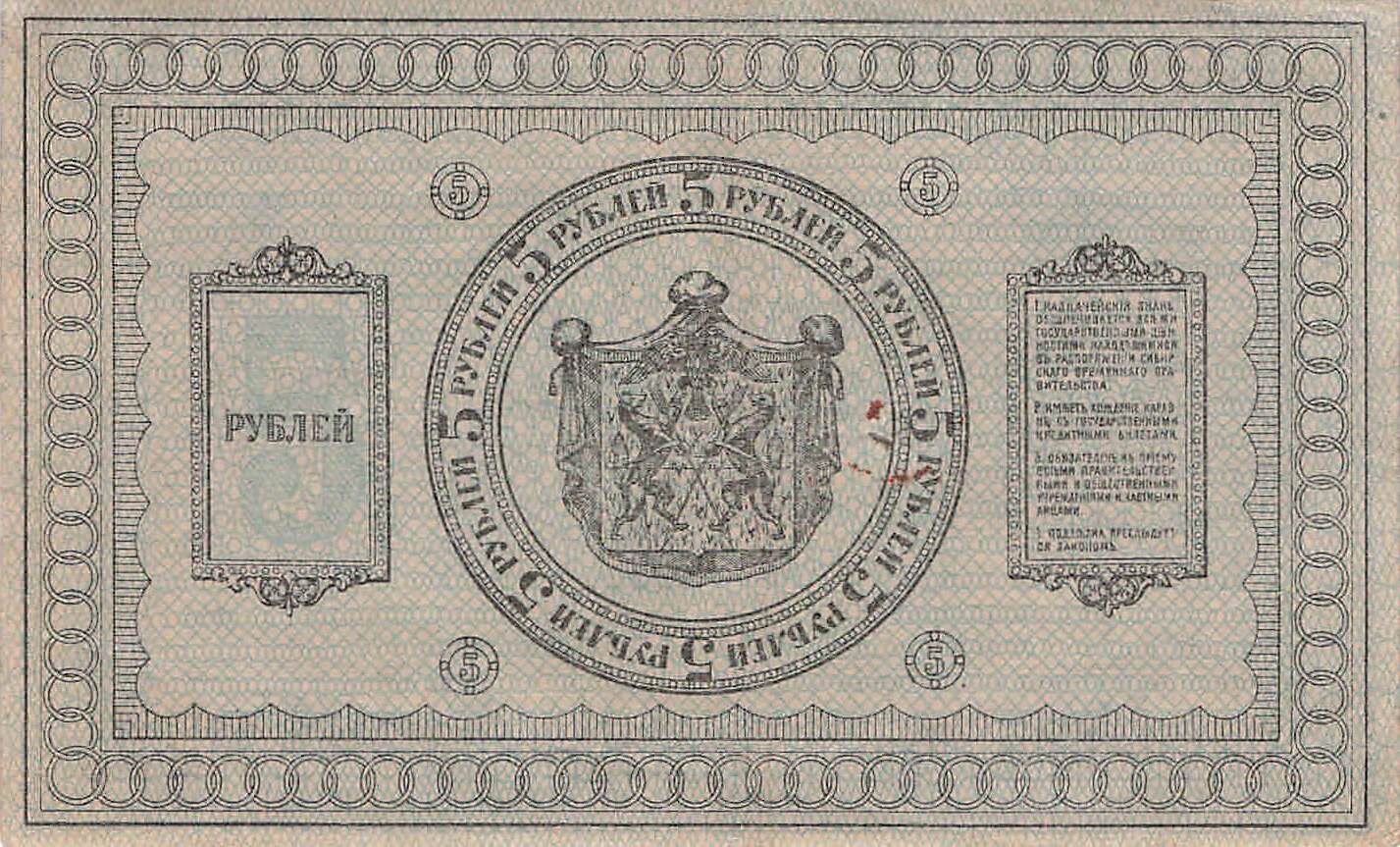 Siberian Provisional Government P.S817 - 5 Rubles 1918 VF